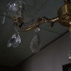 フランス、クリスタルドロップがついた3灯シャンデリア。国内で使用可能