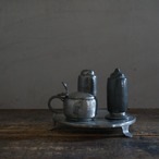 イギリス、ピューター製トレー付ソルト&ペッパーポット。
