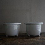 国産、白磁の植木鉢。1970年頃に製造されたものとなります。作りのムラやデッドストックですが内部保管による汚れが少し有ります。